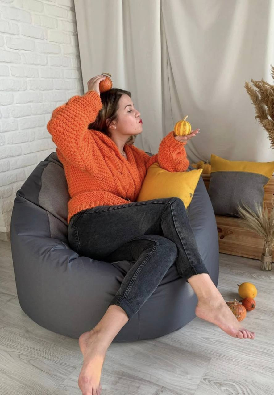 Вы только посмотрите на эту оригинальную модельку бескаркасной мебели это кресло мешок груша котик для детской комнаты особенность этого кресла в том что там есть кармашки благодаря которым вы сможете складывать туда различные маленькие вещи.