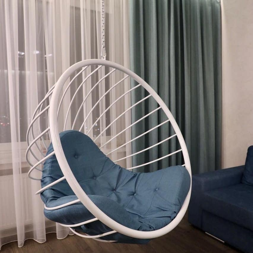 Кресло шар к потолку в квартире это очень красиво и современно а главное не обычно согласитесь сложно найти у кого будет интегрирован такой предмет интерьера дома, но вы сможете стать первым кто сможет первым удивить всех вокруг своим решением. Особенность также что изделие можно установить в небольшой квартире так как в кресле отсутствует стойка, а изделие крепится к потолку поэтому на этом моменте мы экономим достаточно места.