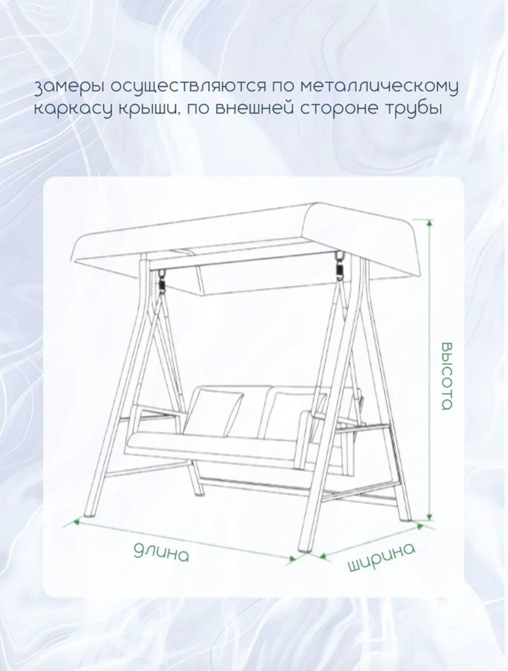 Зимний чехол защитный нужен для садовых качелей ведь не у каждого хозяина есть возможность установить на зимнее время года качелю в тех помещение поэтому на помощь прийдут вот такие защитные чехлы которые смогут защитить конструкцию от снега и дождя. Данные чехлы это эффективное решение чтобы продлить срок службы садовой качели.
