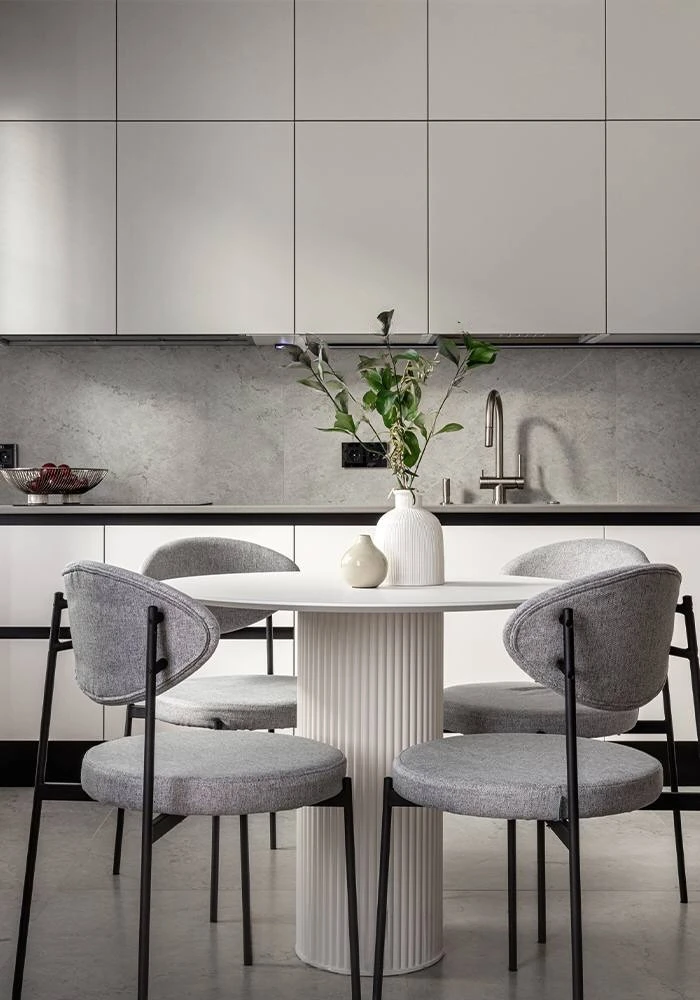 У нас вы сможете купить угловую кухню без ручек серого цвета под интерьер в стиле LOFT замеры и монтаж мы делаем исключительно только в городе Днепр цвет фасада серый по вашему желанию мы сможем изменить его на другой также стоит отметить что количество цветов фасадов и столешниц огромное количество на замер кухни мы приезжаем в обязательном порядке с большим количеством образцов где вы сможете выбрать для себя тот который Вы пожелаете.