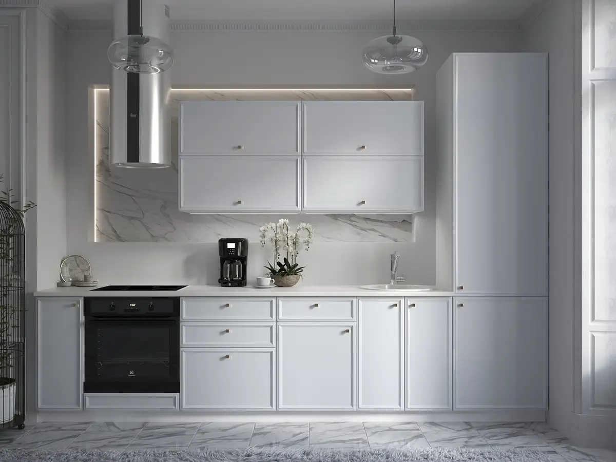 Купить прямую белую кухню со скрытыми ручками в стиле минимализм в Днепре под заказ