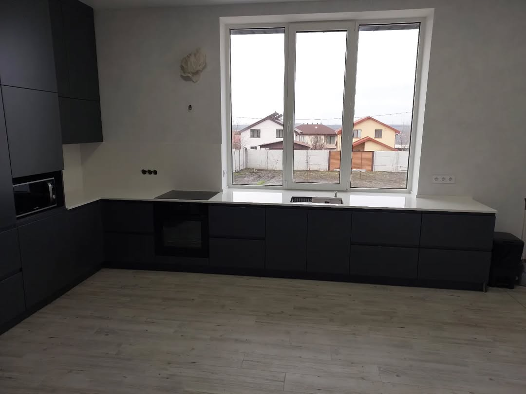 Одна из самых интересных решений в нашем интернет магазине это темная угловая кухня которую вы сможете заказать в Днепре данный проект был выполнен в стиле минимализм кухня не имеет ручек поэтому она отлично подойдет для интерьеров в стиле LOFT, хай-тек и минимализм также вы сможете изменить цвет фасада и самой столешницы при производстве мы используем только лучшие материалы которые вы сможете выбрать для своей будущей кухни. Все кухни делаются под заказ мы сначала выезжаем к Вам на объект с образцами выбираем цвета фасадов и столешницы, фурнируры мы делаем проект после согласования всех моментов мы начинаем производством а затем монтаж.