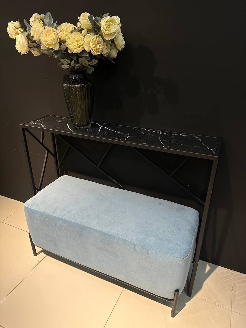 Вы ищите удобный пуф для спальни или другой комнаты? Мы готовы предложить для Вас интересное решение которое позволит добавить в Ваш интерьер особый внешний вид каркас выполнен в черном виде а мягкая часть из мягкого велюра голубого цвета, так как мы производители мы сможем изменить цвет металла и мягкой части а также изменить размер пуфа.