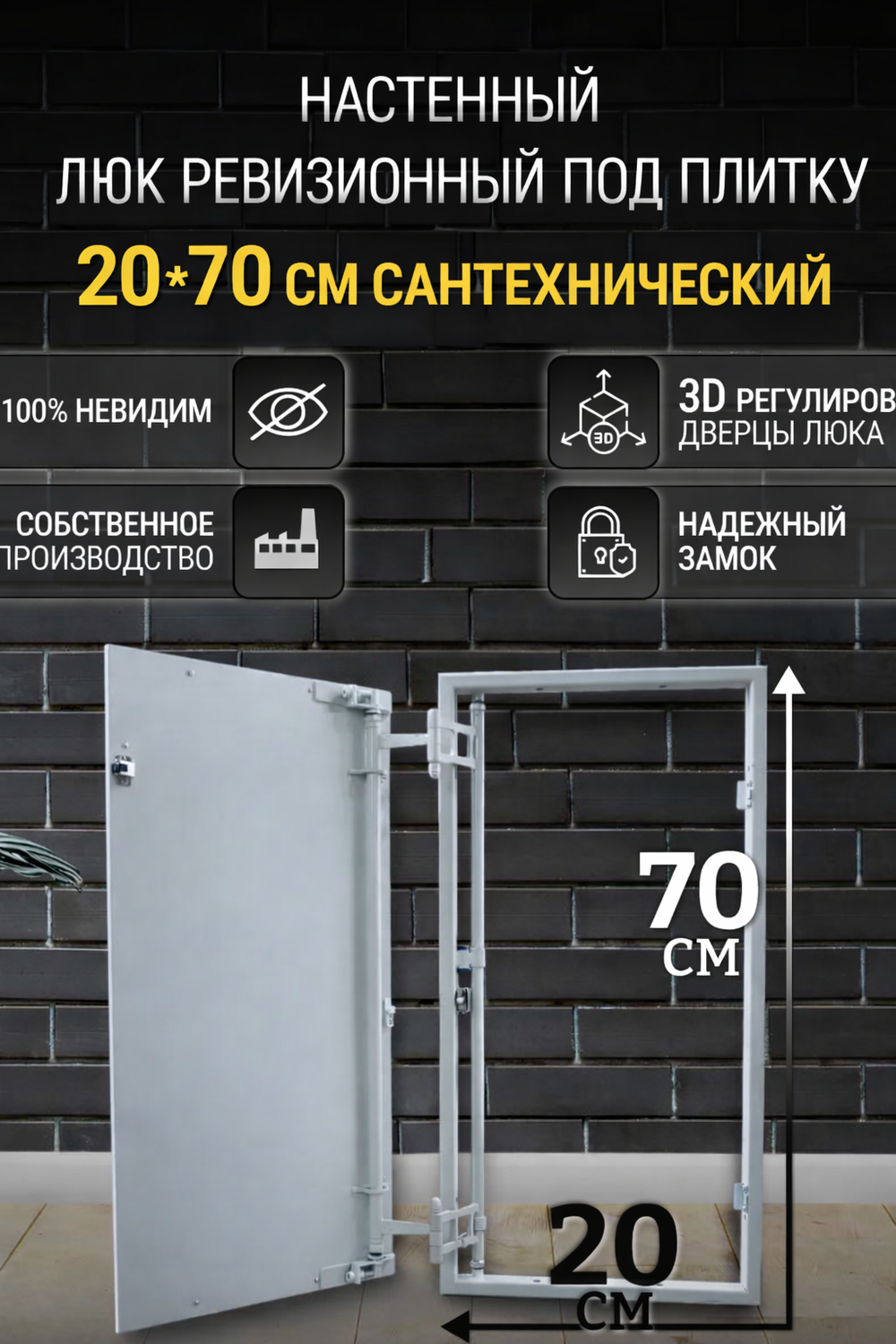 Усиленная конструкция выдерживает нагрузки и подходит для частных домов, гаражей, дач и хозяйственных помещений. Каркас выполнен из прочного металла, устойчивого к деформациям и длительной эксплуатации. Люк обеспечивает безопасный и удобный доступ к коммуникациям или погребу, легко открывается и практичен в использовании. Если Вам не подходит данный размер вы сможете заказать люк по своим размерам.