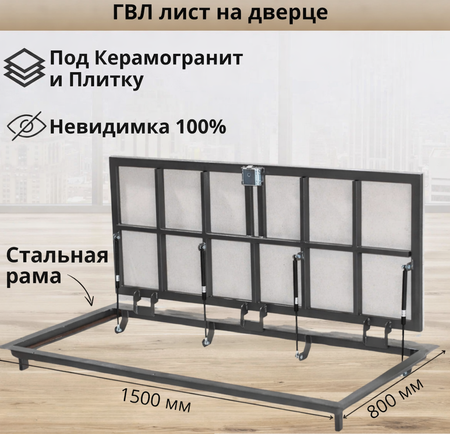 Купить большой напольный люк в подвал 1500х800 мм под плитку и керамогранит в Украине