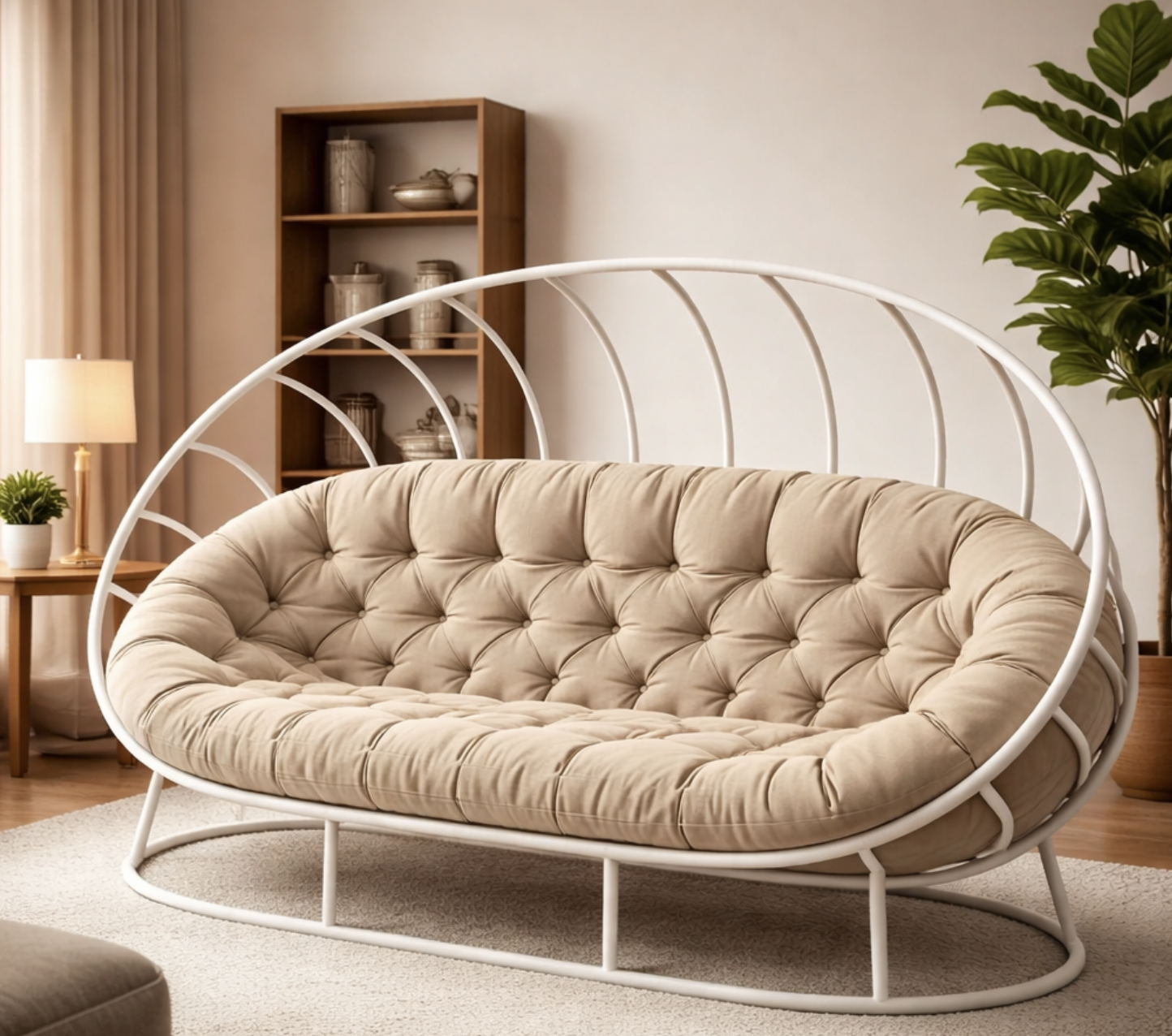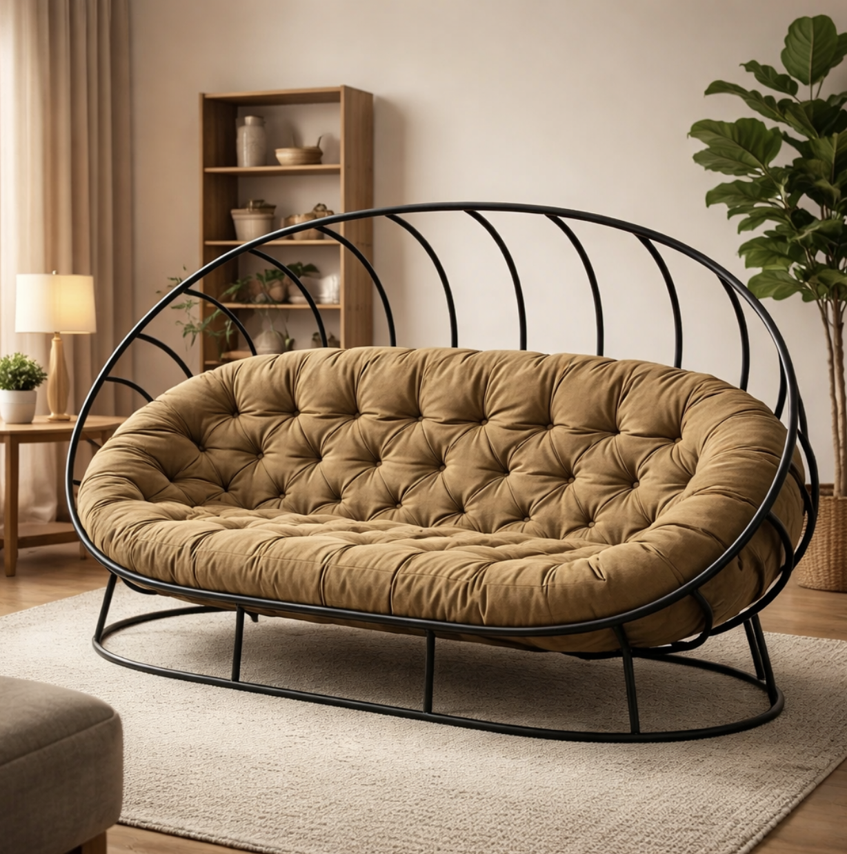 Шикарный дизайнерский диван в стиле лофт для интерьеров который отлично дополнит интерьер вашего дома, квартиры или же офиса также очень красиво будет смотреться вместе с креслом шаром цвет каркаса и цвет мягкой части вы сможете изменить под себя любой. Использовать такой вариант дивана можно не только в интерьерах но и на открытых площадках главное предупредить о том чтобы мы сделали специальную подушку из ткани оксфорд доставка работает по всей Украине.