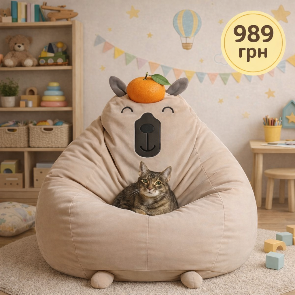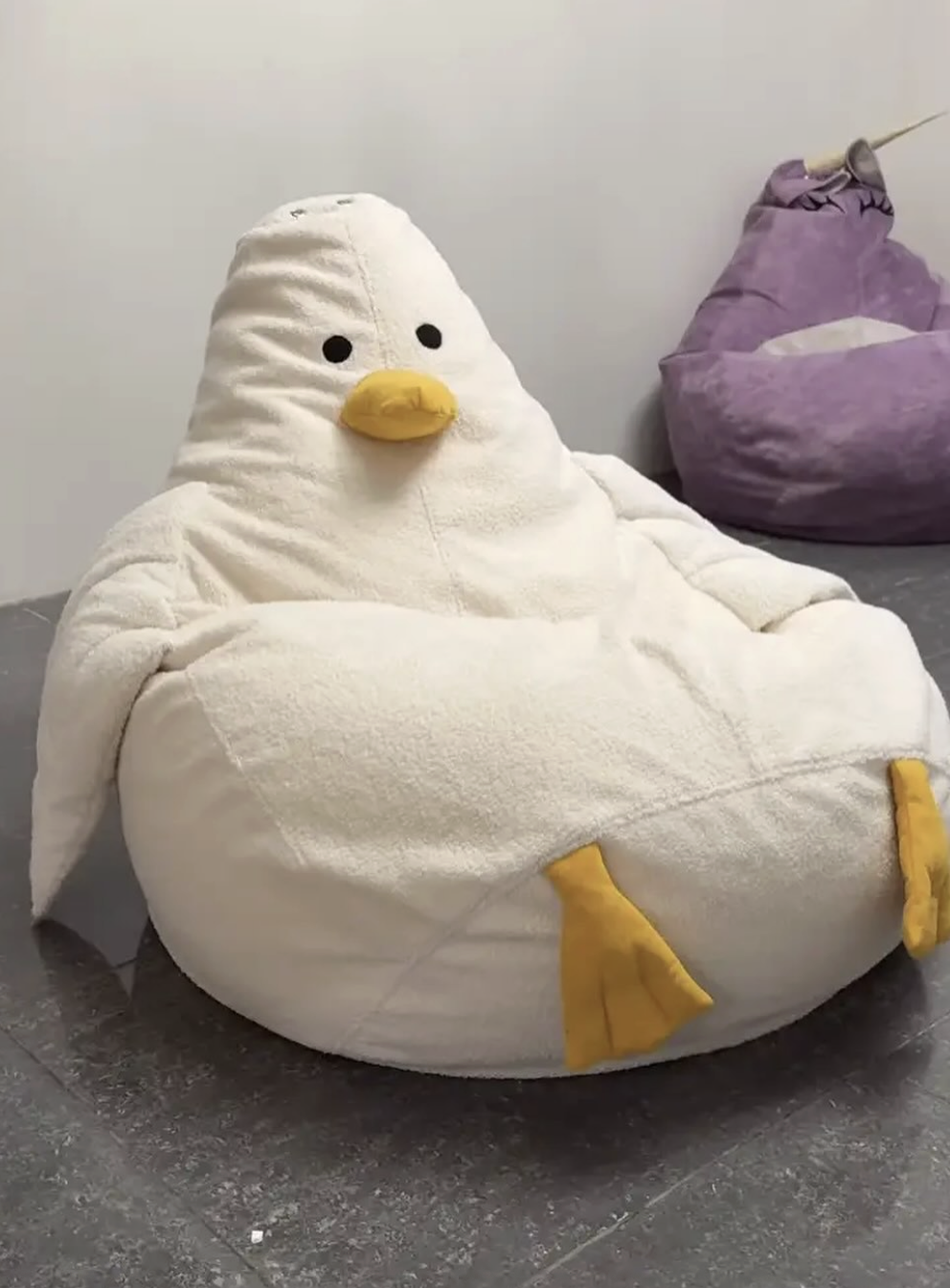 Одна из самых интересных кресел мешков груш в виде гуся из мягкой ткани велюр которая отлично подойдет для вашего будущего интерьера, внешний чехол вы сможете снять и постирать по желанию подойдет в качестве большой игрушки и удобного кресла мешка.