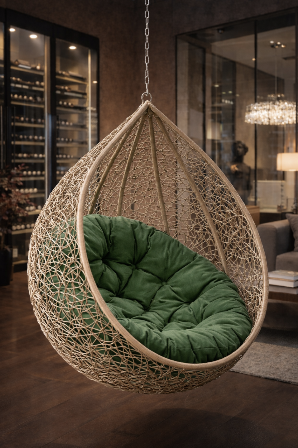 Ответ: здесь представлен только кокон который оплетён искусственным ротангом его вес вместе с подушкой 18 кг.