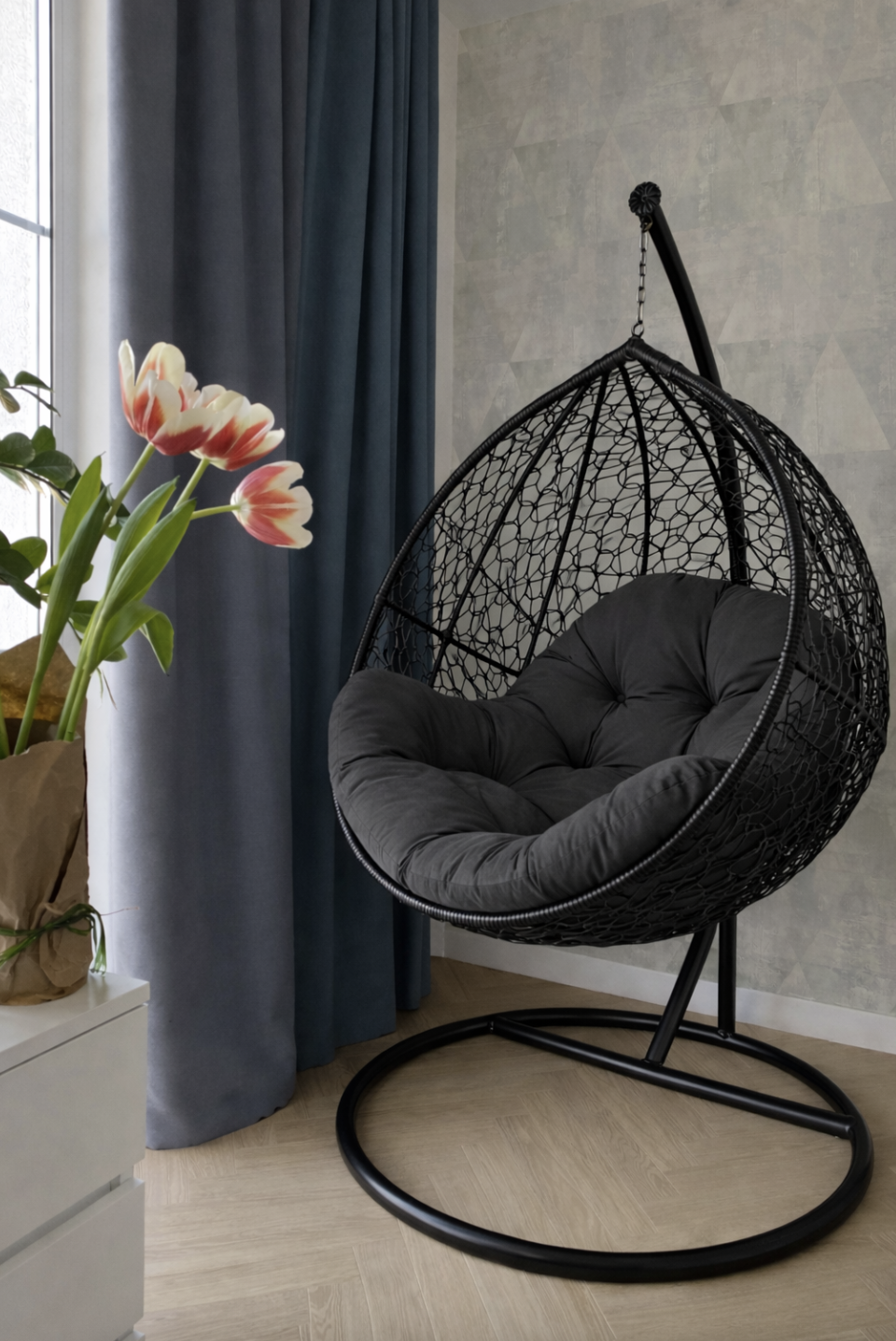 Подойдут более для открытых мест таких как дачи, сады Вы только представьте как приятно сидеть на таком кресле в своём саду в тени и качаться из стороны в сторону наслаждаясь каждой минутой, каркас обработан специальной автомобильной краской которая будет защищать металл от ржавчины, поэтому если вдруг неожиданно пошел дождь нужно забрать с собой только подушку, чтобы та не намокла. А с каркасом ничего не произойдёт. Также такие изделия будут хорошо смотреться в интерьерах где царит хай-тек, минимализм ведь в таких интерьерах мебель должна быть либо из дерева или железа, если Вы также любите интерьер в стиле Loft кресла качалка из такого материала, также будет как рас кстати. Цвет краски каркаса можно подобрать любой на выбор, также как и цвет подушки.